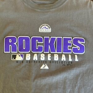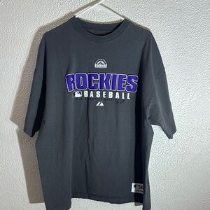 Show your Rockies pride with this Majestic shirt. Bold black with striking purple lettering. Ideal for fans.
