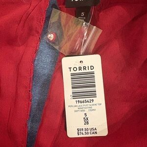 Torrid peplum long puff sleeve lace top blouse 5X 28 5 new NWT