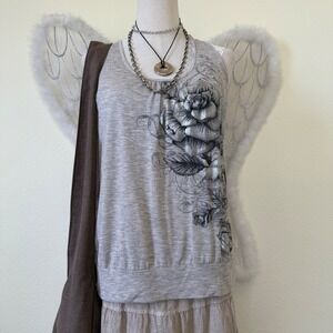Y2K Girly Grunge Gray Rose Graphic Tank Top Sleeveless Racerback Boho Relaxed