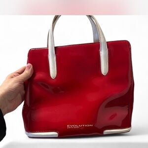 Red patent (charol) Pierre Cardin – Evolution evening handbag. Chic and perfect for special occasions.