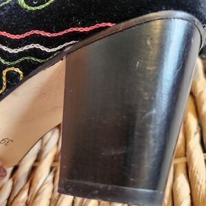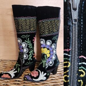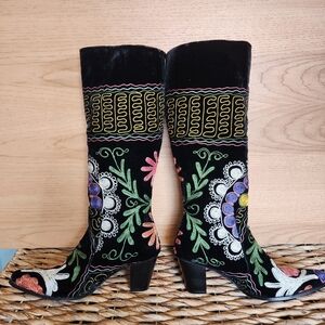 WOMEN'S SUZANI BLACK VELVET HAND EMBROIDERED STATEMENT KNEE BOOTS SIZE 8.5 / 39