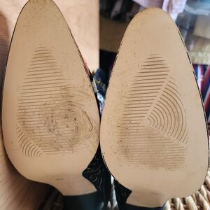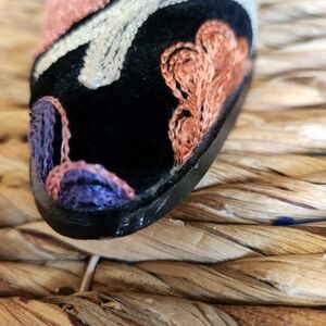 These are absolutely stunning! Leather inside lining, colorful intricate embroidery. Amazing condition, with a few signs of light wear. See close up photos at the end. They are gorgeous in the pictures and even prettier in person. Due to the nature of the hand-stitched Suzani fabric, each pair is considered one-of-a-kind, with variations in pattern and color.