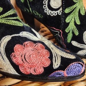 women's, boots, knee, leather, velvet, colorful, vibrant, embroidered, embroidery, handmade, handcrafted, boho, bohemian, festival, poet, stevie nicks, gypsy