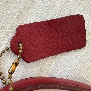 Chic red leather shoulder bag by Coach. Features a classic turn-lock closure. Perfect for elevating any outfit.