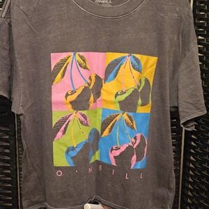 O'Neill Boxy Crop In An Andy Warhol Style Graphic Cherry Print Green Orange Blue