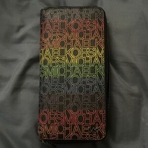 Michael Kors Black Rainbow Logo Long Zip Wallet