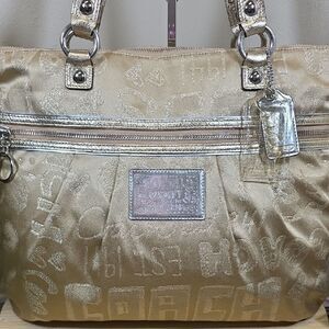 Coach Poppy Story Patch Glam Tote with Matching Wallet