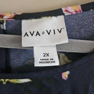 EUC navy blouse with pink floral print. Short sleeves. Functional buttons in back, so it can be unbuttoned down the back. 92% Polyester/8% Spandex. Machine wash cold.
