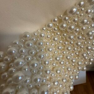 Elegant cream dress. Features pearl-embellished cuffs. Perfect for formal occasions.