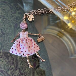 Le Amiche Rose Gold-tone Swar Sim. Pink Strass Crystal Chev Doll Charm w/chain
