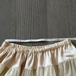 Chic A-line skirt with ruffled layers. Soft cream color. Perfect for versatile styling, fun for costumes.