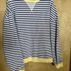 So cool and classic, this timeless crewneck is featured in an oversized, slouchy silhouette and staple striped print with contrasting hems for added dimension.
