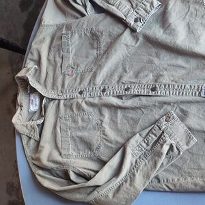 Levi's Red Tab, size L. Blue jean button closures on the front and cuffs, red tab on pocket and label at bottom hem.