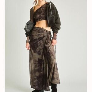 Turn heads in this so special set featuring a ruched crop top with asymmetric neckline and matching mid-rise wrap skirt both designed in a subtle tie dye mesh fabrication for ready-for-anything style from season to season.