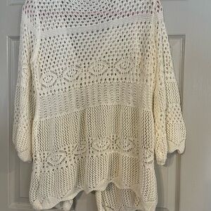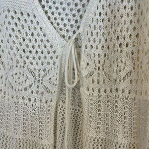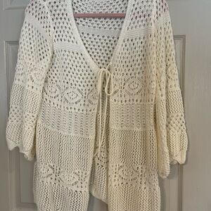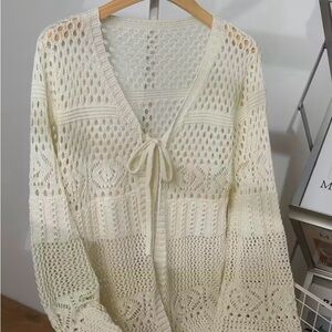 Elevate your style with this elegant cream open-knit sweater cardigan . Perfect for layering, it offers a chic and breathable design. Ideal for any casual outing. EUC
