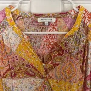 Rose & Olive Vibrant Patchwork Blouse size L