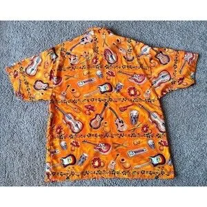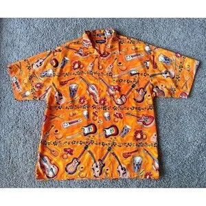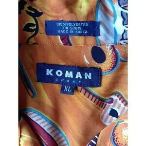 Vintage Koman Button Up Shirt Men's Size XL Tropical Graphic Orange Short Sleeve
