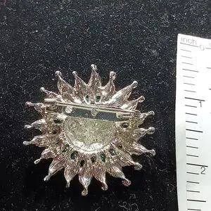 Dazzling brooch with silver petals and turquoise beads. Adds charm to any attire.