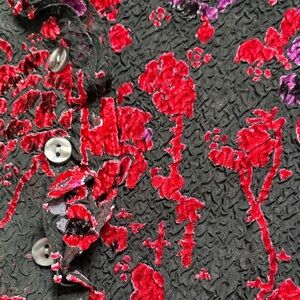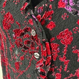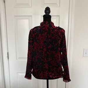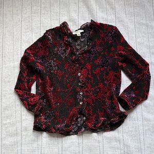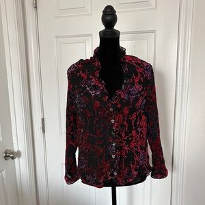 Coldwater Creek black and multicolor floral velvet burnout button-up top.