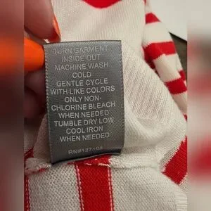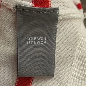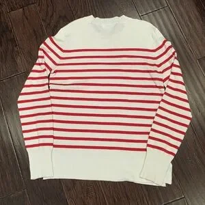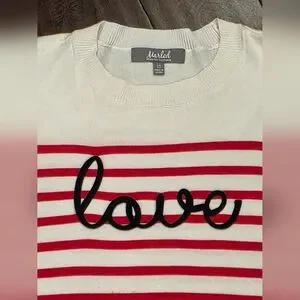 Marled-Red & White Striped- Crew Neck Sweater-"Love" Embroidered In Black- XS 🚢