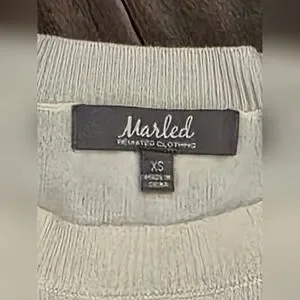 Embrace a nautical vibe with this Marled sweater, featuring a white base with red stripes and a classic round neckline. The 'love' script embroidered in black adds a charming touch, while ribbed cuffs ensure a comfortable fit for any casual occasion. The sweater is made from acrylic material with a tight-knit style.