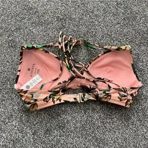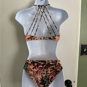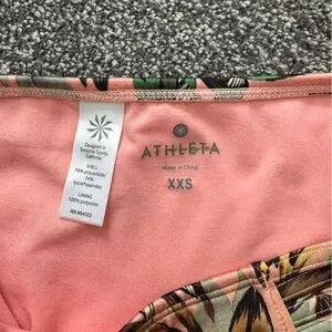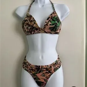 Athleta size XXS bikini with green and tan leaf design. Perfect for summer beach days. In good used condition.