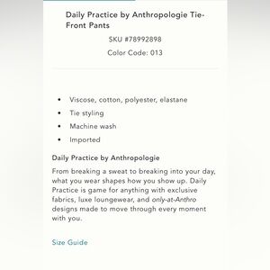 Anthropologie Daily Practice Tie Front Pant