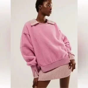 Free People We the Free Cozy Camden Pullover size XS. This pullover has an oversized fit with a soft sherpa fabrication. Split hem with a raw seam detail.