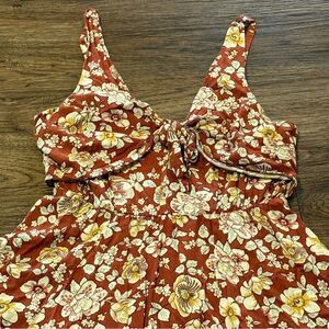 Torrid Floral Knee Length Dress Burnt Orange White Gold Size 1
