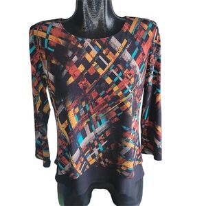 Bali Multicolor Unique Avant Garde Abstract Art Deco Style Top M