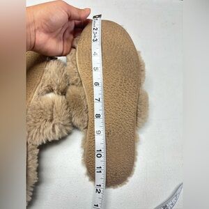 Maeve Fuzzy Slippers with White Bow Size 9