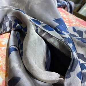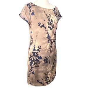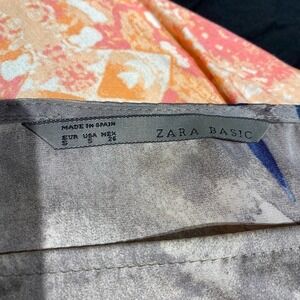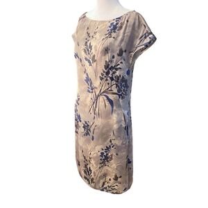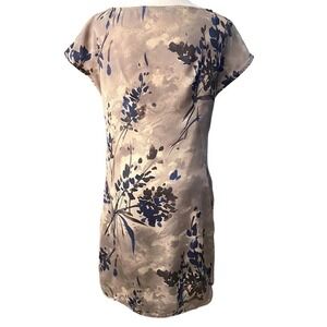 Zara Basic Womens Satin Floral Shift Mini Dress with Pockets Cream Navy SZ Small
