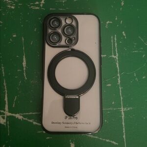 Phone case for iPhone 16 Pro with 360° swivel stand made from aluminum alloy material, The clear phone case edge, camera Lens, and magnetic ring, BLACK ONLY