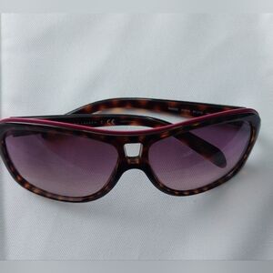 Stylish tortoise shell sunglasses featuring elegant purple lenses. Perfect for adding a touch of sophistication to any outfit.