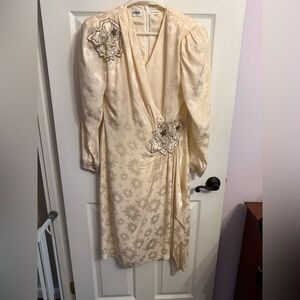 Vintage d’Ore silk cream dress with beading. Lined skirt. Size 6. Smoke and fragrance free.