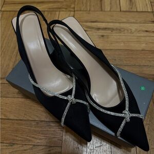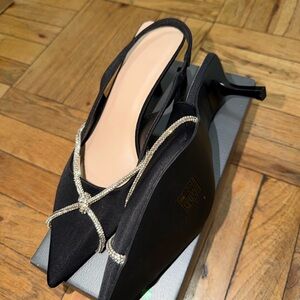 Step out in style with these elegant black slingback heels, featuring stunning silver accents. Perfect for any occasion, these shoes offer both comfort and sophistication.