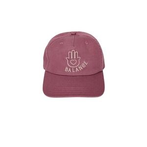 Burgundy baseball cap with Hamsa hand and heart logo. Adjustable strap for a comfortable fit. Perfect for casual outings, yoga practice, or outdoor adventures.