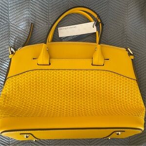 Elevate your look with this vibrant yellow tote. Perfect for any occasion. Stylish and practical. Comes with crossbody strap! New with tags. Small spot on front of the purse, please see last photo. Other than that it’s in gorgeous condition!