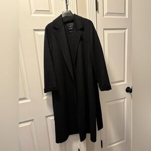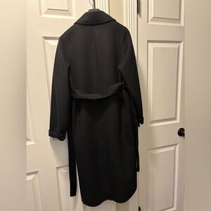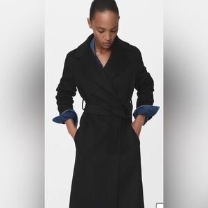MANGO Wool Blend Belted Wrap Coat XXS Black NWOT