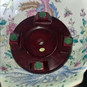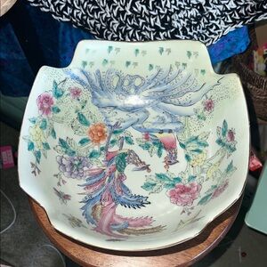 Vintage Chinese Satsuma Bowl Birds Of Paradise with Wood Stand