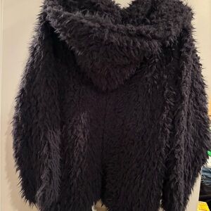Express Navy Blue Faux Fur Coat with hood and pockets