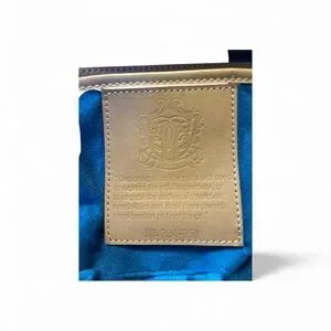 • Interior: Blue suede-like lining with two pockets, mirror, and key hook.