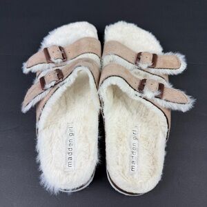 Madden Girl Butterfly Sandals 10 Faux Fur Slip On Fuzzy Shoes Womens Brand New