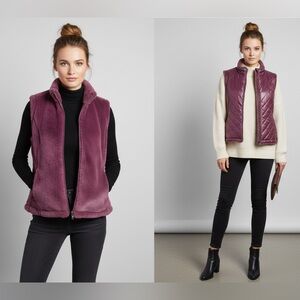 Gorgeous Nicole Miller Original reversible vest in a rich Wine purple. Switch between a glam faux fur side and a sporty quilted puffer side! Very soft, mid-weight insulation—perfect for fall and winter layering. Excellent condition.