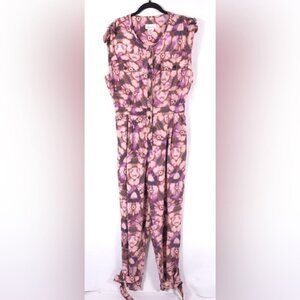 NWOT By Anthropologie Sleeveless Cutout Printed Jumpsuit Purple MEDIUM