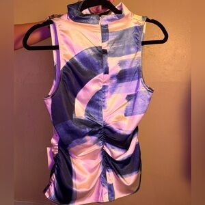 Nordstrom Parker Blue and White Abstract Satin Tank Top
