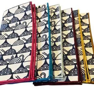 Handmade cotton cloth napkins from our Kitties & Ramen series, created together by my daughter and me using premium cotton fabrics. These napkins are 100% cotton, fully lined with a coordinating blue interior fabric, and finished with a colorful serged edge for durability and a playful, polished look.