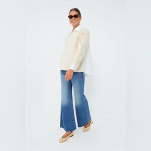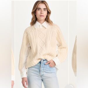 Sea New York Leni Wool Cablemknit Sweater Shirt Combo Cream Knit Size Small