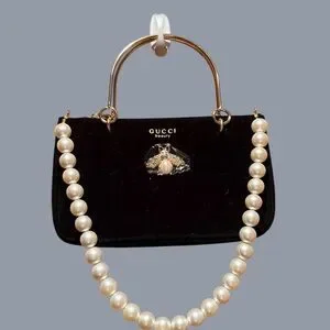 GWP Gucci Black Velvet Bag with Pearl Accents