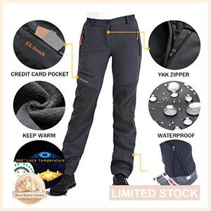 Waterproof Insulated Snow Pants Fleece Lined Softshell Hiking Ski Outdoor
